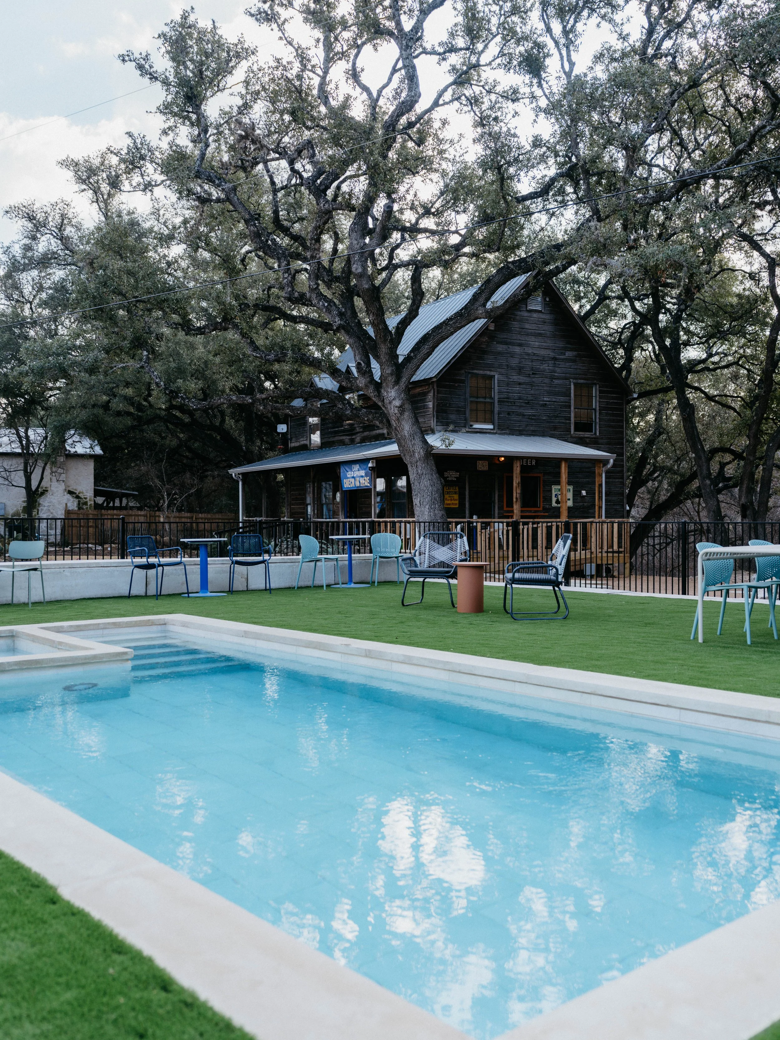 With Frio getaways as its specialty, these cozy cabins sleep up to four with one bedroom (king bed in bedroom & pull-out couch in living space), one full bath, closest proximity to the pool, river, & bar.